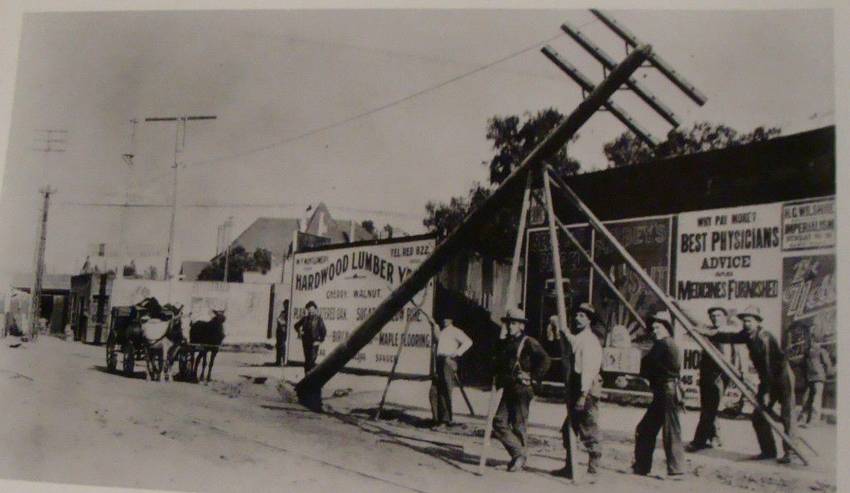 Line Crew Setting Tall Utility Pole, c.1915.