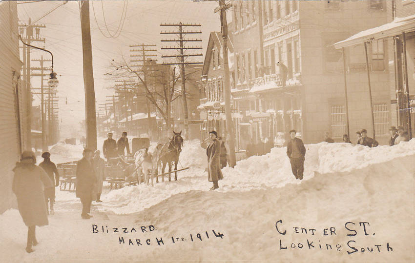 Freeland, PA March 1, 1914 Blizzard. Town Center with Tall Openwire Utility Poles