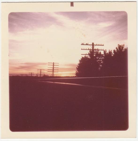 Row of 5-Crossarm Openwire Telegraph Poles Along Railroad at Sunset, c.1970.