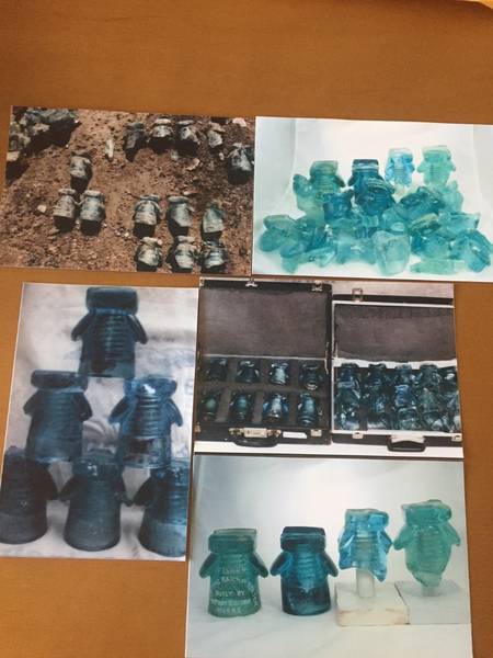 This major find of CD 265 Fisher insulators was made in Detroit, MI by a non-insulator collector probably around 1988-1989, but a small number of these insulators have been known in the hobby since at least 1972. According to my notes this find was made along the Highland Park Interurban Fisher Line. I got these photos/postcards from Shaun Kotlarsky years ago. |