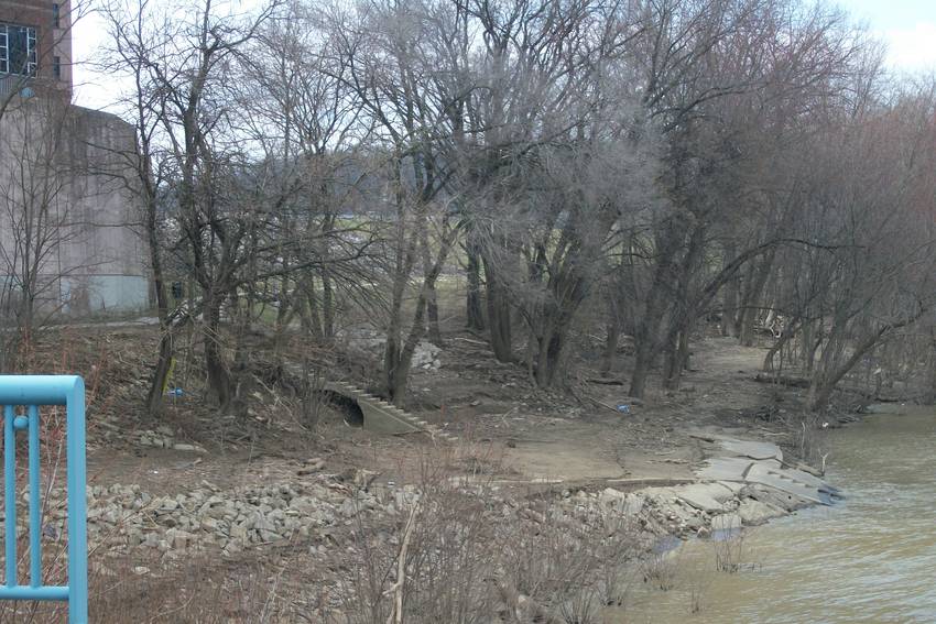 There past those concrete steps that have nearly eroded away lies the entrance to what we call "The Woods". It's where the river carves out the bank to expose history.