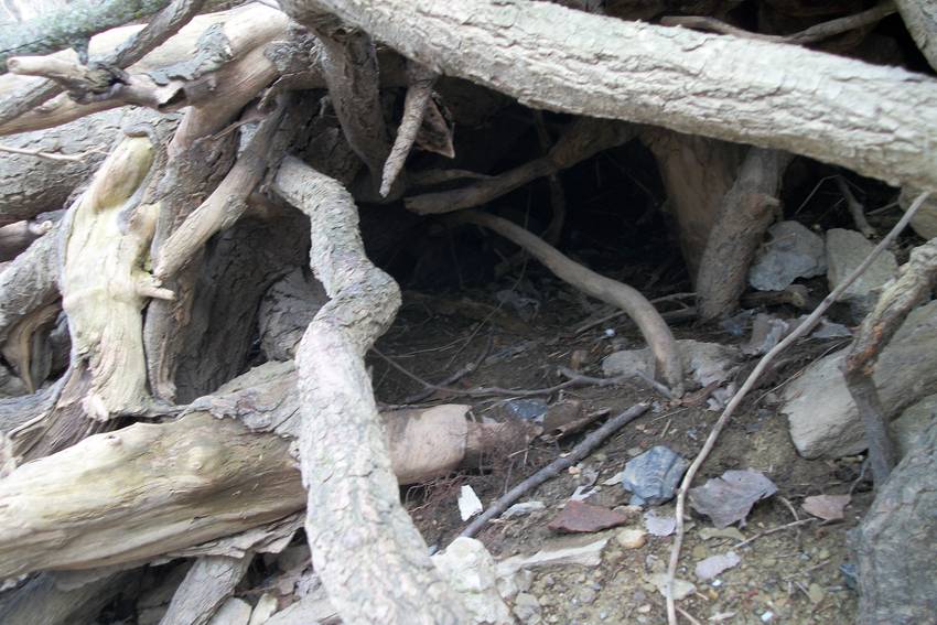 I had already seen one ground hog and one rat on this trip as well as a rabbit that bolted from in front of me and startled me as much as I startled it. The thought of crawling up to see what was in there wasn't going to happen.