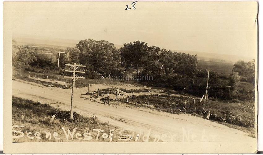 Sydney, NE 1928. Pair of Telephone Openwire Pole Lines Along Rural Road.