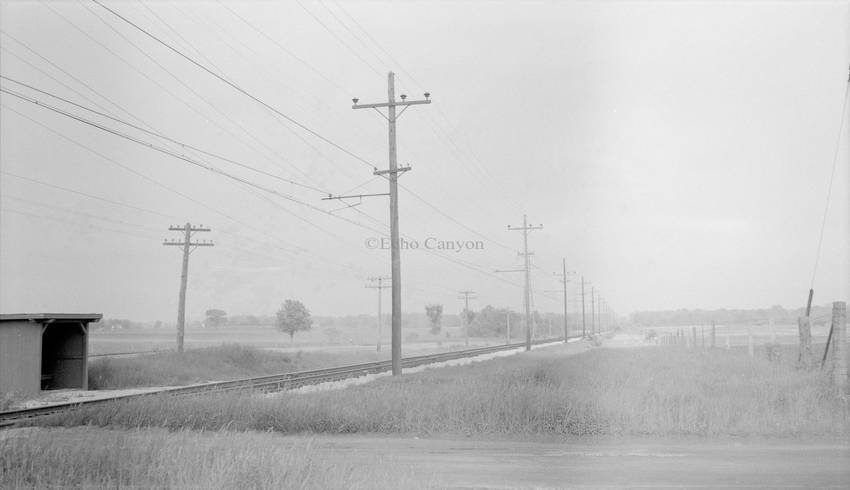 Added note (from a reader)… "In this pic, this is likely an interurban streetcar line. The poles with multiparts in the foreground were likely part of a private, dedicated line that carried juice to the streetcar powerhouses. The arm below has a feeder cable, as well as a phone circuit that connected the streetcar powerhouses. This was common practice with interurban streetcar lines. The shed-like building at the far left was likely a passenger waiting area." …..Thanks, Dustin! ------------------- |