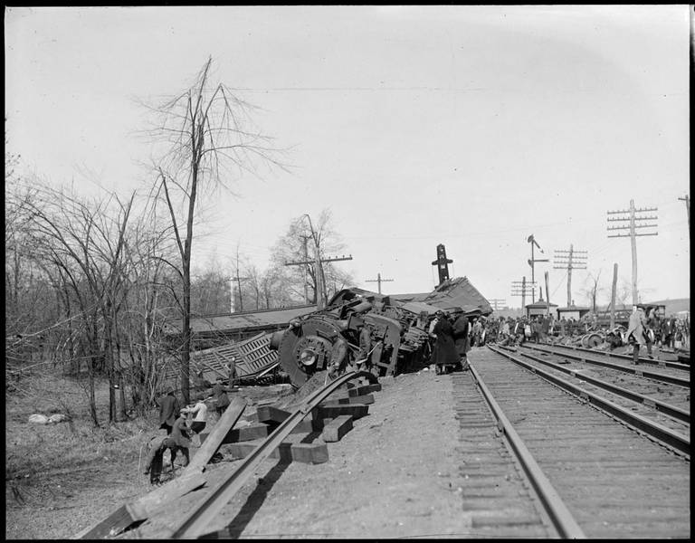 Norwood is about 20 miles southeast of Boston. This image was photographed on what still is the main RR route (now Amtrak) between Boston and New York City. Important telegraph lines pararelled it since about 1850. Two separate pole lines are seen here. I believe one was Western Union (on the right) and the other B&O Telegraph. Both lines stood until the early-to-mid 1960s. |