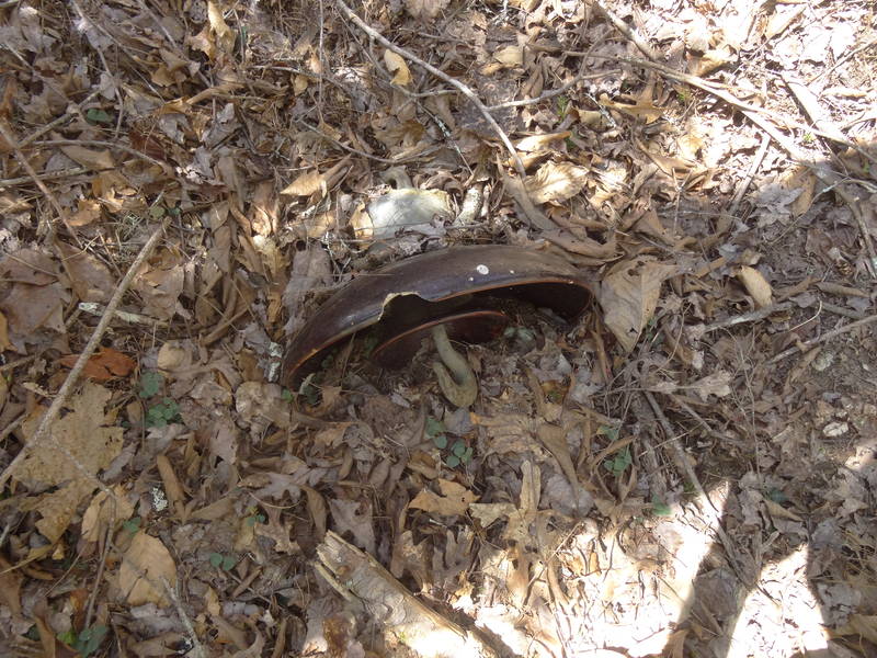 Southern Power Company re-insulated this particular 100,000-volt line in about 1919 and one of the original insulators rolled down a steep hillside where its pictured here. 100 years of rest.