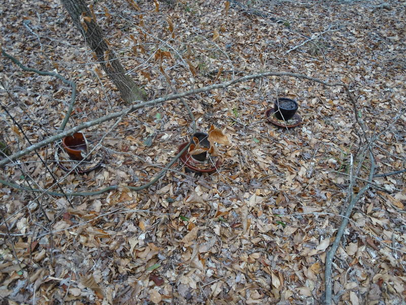 The transmission line has an absolute load of these Westinghouse/Pinco multiparts removed in the last 30 years and replaced with lineposts and polymers. Almost every pole location had three insulators left upside-down in the woods filled up with water. And in the winter season that water freezes like it has here, breaking the bottom skirt. The one without a broken bottom skirt now resides in my collection. |