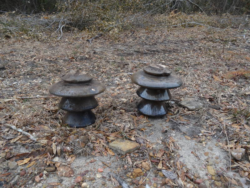 These insulators were installed about 1920 when the transmission line was rebuilt at 44,000-volts. I can imagine an amazing arrangement of early Thomas and Ohio Brass insulators on the original 30,000-volt line was quite something to see before the rebuild. |