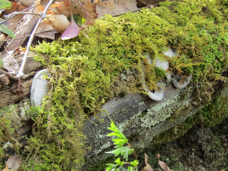 On the remnants of a communication line pole.