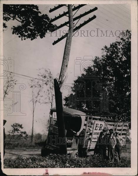 Truck Hits Busy Telephone Openwire Pole Carrying Four Crossarms, 1919.