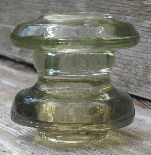 Here's a rare Italian (embossing unreadable) two-tone spool! Has beautiful light olive green on top half and yellow straw bottom- giving it an almost citrine appearance! Never seen another one of these in light olive green and especially not with two tone yellow straw! The spool was deformed on the lehr belt causing the lower skirt to touch another insulator in two places which could be mistaken for chips. But a look from underneath reveals the it was made out of round at the factory! Has small bb ping, small wg peck, 2 teeny tic marks and a small scuff mark on the embossing. Measures 2 7/8" x 2 7/8". First email gets this rare spool for only $85 plus 8.25 shipping. Thanks! |