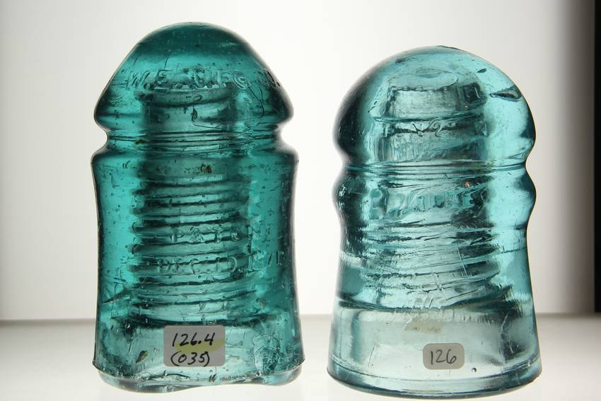 Glass Insulator – CD 126.4 with a really cool overpoured base! CD 126 Brookfield with long, skinny bubbles. Both in NICE condition! I am not an expert with Insulators. Please use the photo for color and condition information or contact me if you have any questions! Both for $20, plus shipping, I will be glad to combine items to save on shipping cost. |