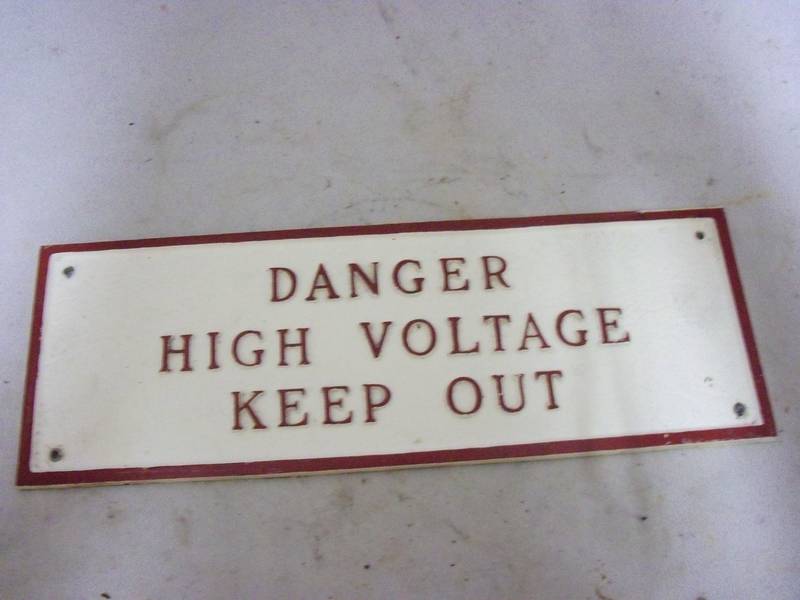 This unique high voltage sign came out of a hospital in Conneaut Ohio. The lettering is embossed and painted red on top. I am not quite sure of the composition of the sign but it is in excellent condition. It measures about 12x4 but I have not measured it. Add this unique sign to your wall for $60 including shipping within the USA. No international shipping. PayPal is preferred but I accept all forms of payment |