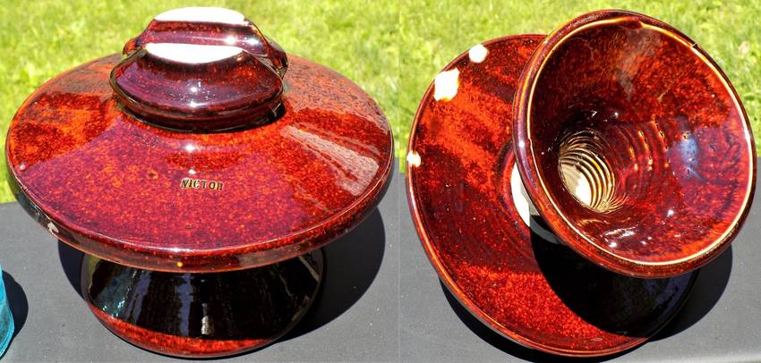 Here is an M-2435 tulip-shell multipart with VICTOR incuse on the umbrella. The mottled, speckled reddish brown glaze is quite impressive in the bright sunshine. [id=567195075] for another angle. The three glaze flakes on the underside of the umbrella is the extent of damage. Asking $45 plus postage. |