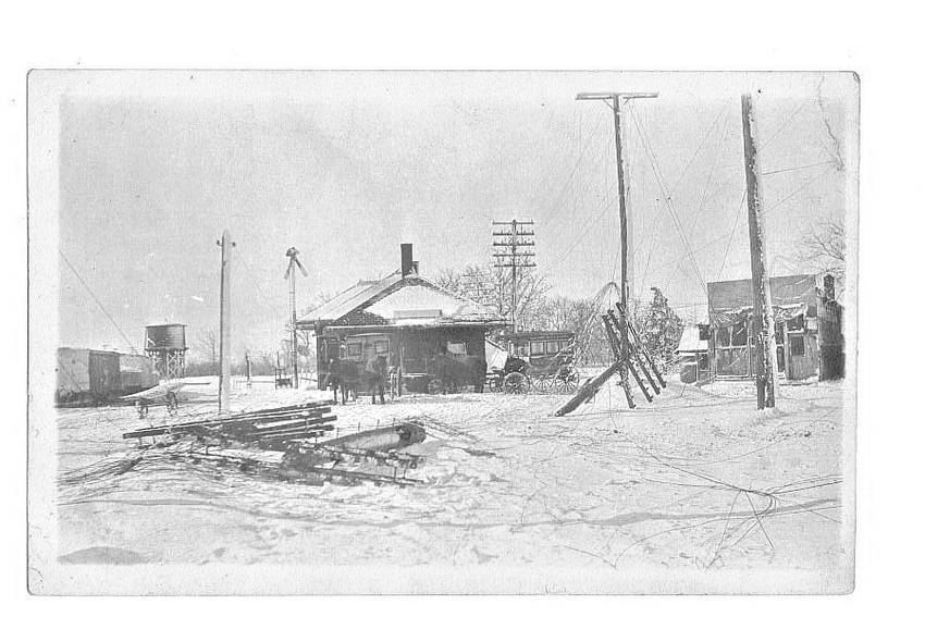 Iowa Falls, IA. c.1915. Ice Storm, Fallen Telegraph Poles Next to RR Station.