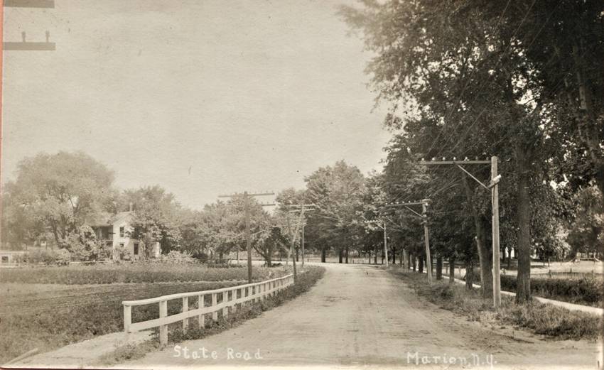 Marion, NY c.1915. Openwire Telephone Lines on Both Sides of Unpaved Road.