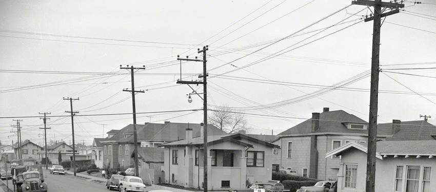 Oakland, CA c.1960. Residential Distribution Lines, Multiparts, Gumball Street Lights