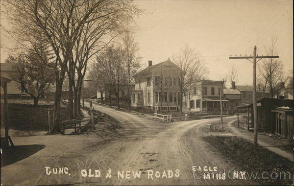 Eagle Mills, NY c.1910. 10-pin Telephone Openwire Line Along Unpaved Road, Old Homes