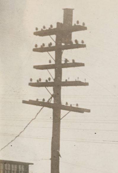 Apparently wires terminated on each side of these transposition insulators for connections to the wooden junction box that you see.
