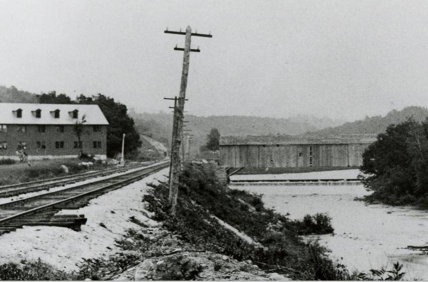 Erving, MA c.1870. Early Double Crossarm Telegraph Pole Line Along RR and River.