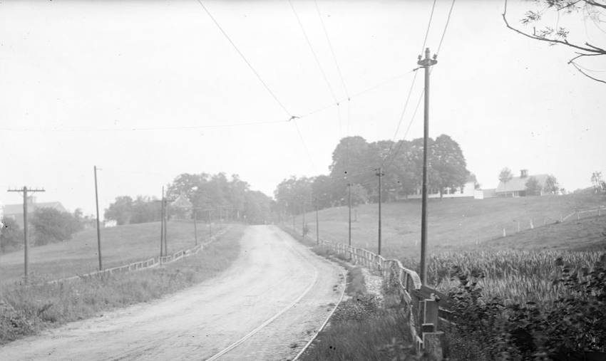 Longmeadow, MA c.1900. Steel Trolley Poles Along Rural Road.
