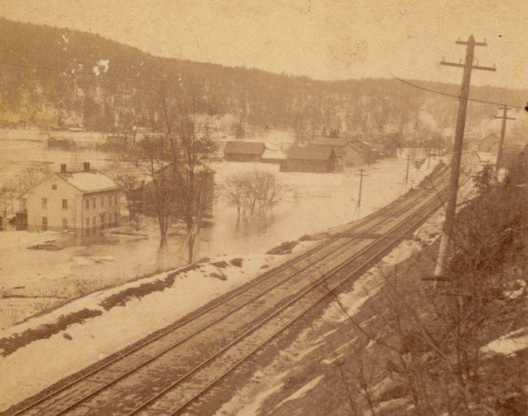 Double Crossarm Telegraph Line c.1895 Alongside RR Tracks During Flood.