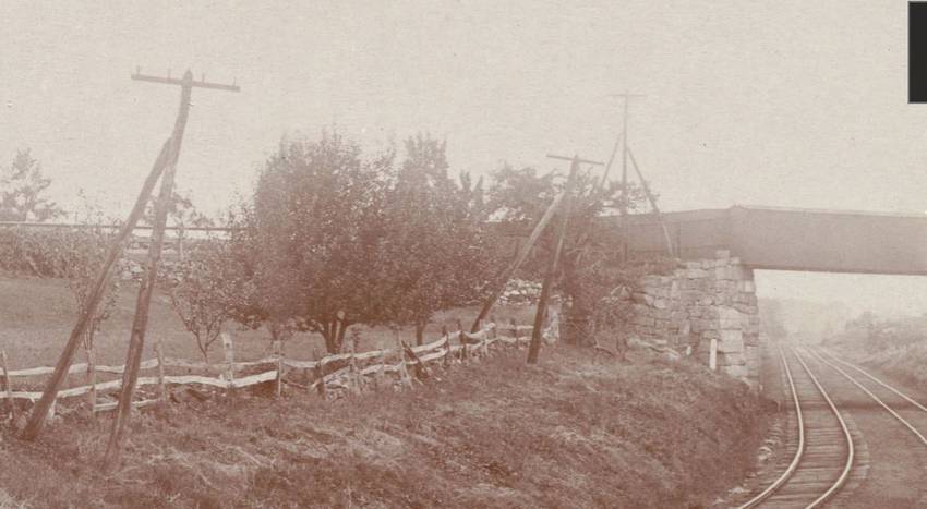 W. Boylston, MA 1895. Old 4-Pin Crossarm Telegraph Line Along RR in Countryside.