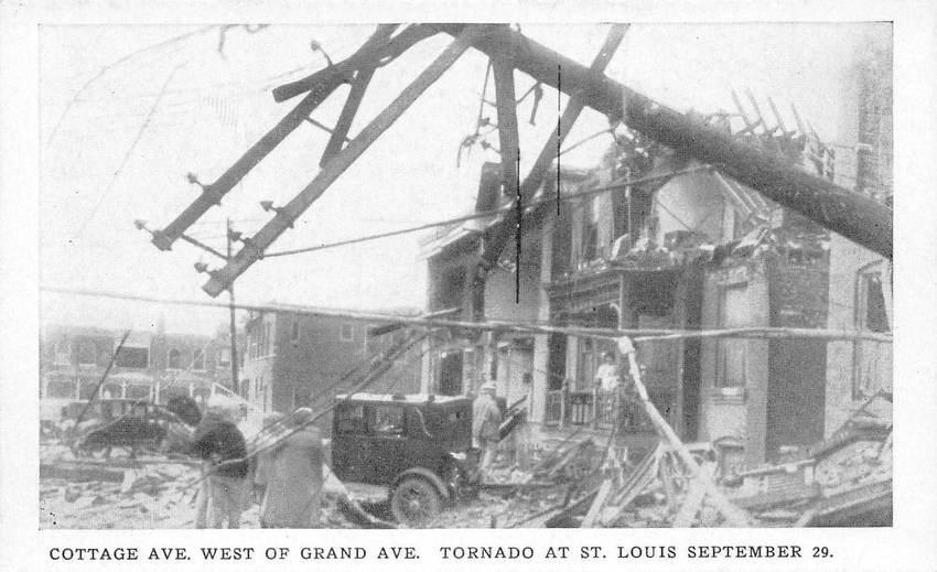 St. Louis, Mo. Badly Damaged Electric Utility Pole After Tornado, 1910s.