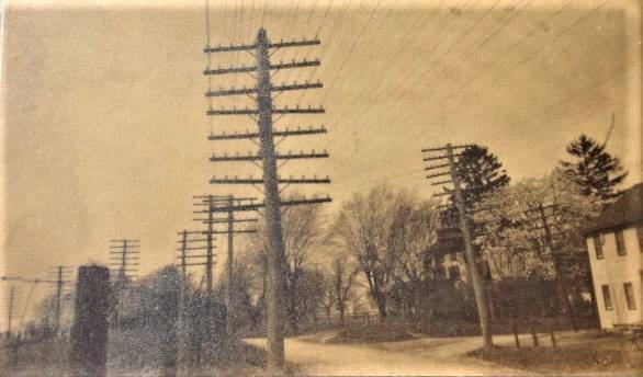 Wyola, PA c.1900. Tall Telephone Openwire Poles Loaded with Crossarms.