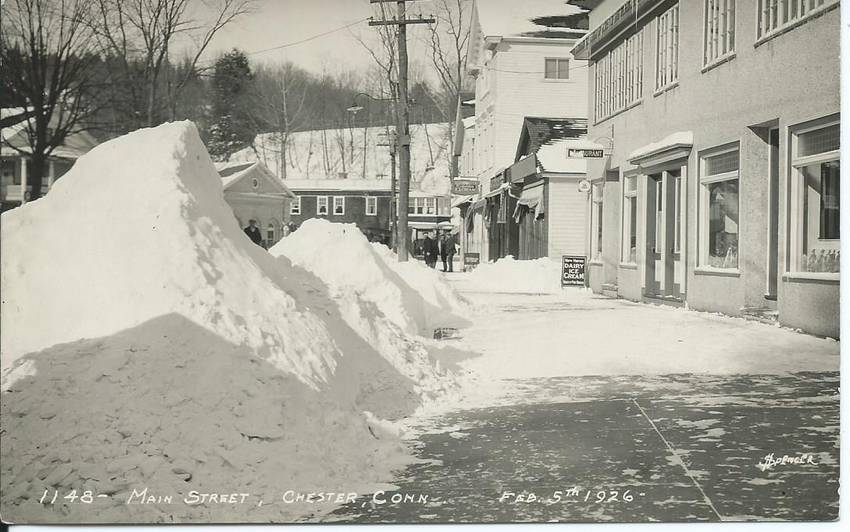 Chester, CT, 1926 Town Center. Local Electric Service Pole Line After Snowstorm.