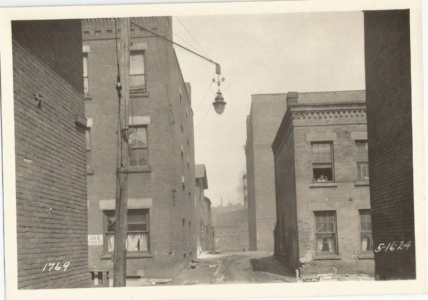 Cleveland, OH 1924. Acorn Street Light on Mastarm Having Insulators on Bracket.