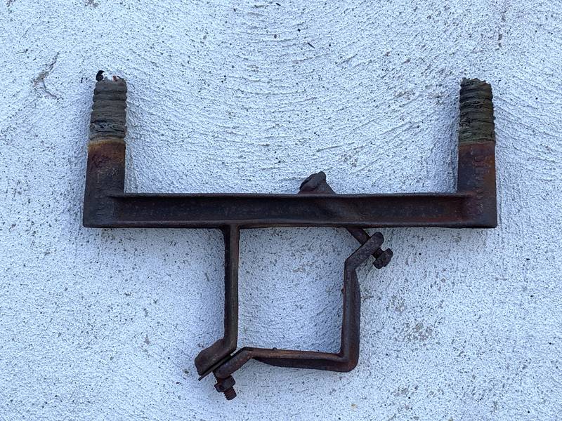 Saint Louis Malleable dual insulator pin. With it you get the two bolts that are likely rusted to the point it will take some work to save them.