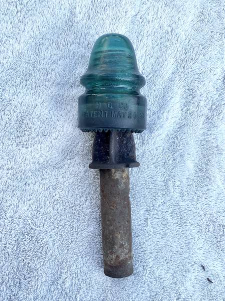Give me $8.00 plus shipping and this is yours, glass included as it seems to be stuck on quite well. For the record, there are a free drips missing, a couple dings, and a pot stone near the S in STANDARD. It is also the no period HG variety. If this doesn't sound good, I can make another offer on this one. Shoot me 8 bucks plus shipping on the insulator, and I'll throw in the pin for nothing!!!! |