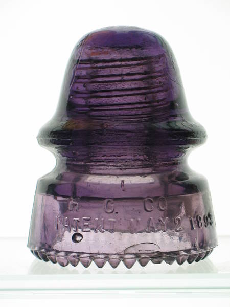 CD 162 [070] (F‑Skirt) H.G.CO./PATENT MAY 2 1893 (R‑Skirt) PETTICOAT SDP. Beautiful medium lilac / purple that passes light very well. 5 drips are partially shaved. 2 have tiny open tips from bubbles but are not damaged. Slight bruise just below the word MAY which is part of the shaved drips. Paper thin surface shear flake below the 8 in 1893. 2 small thin open bubbles on the sharp edge of the inner petticoat. Way above average condition. I'll post pictures of both sides for you to decide. Price $425.00 shipped. Check or PayPal no fee option welcomed. Shipped the next business day upon payment. First email as always! |