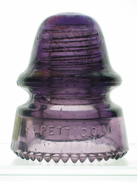 CD 162 [070] (F‑Skirt) H.G.CO./PATENT MAY 2 1893 (R‑Skirt) PETTICOAT SDP. Beautiful medium lilac / purple that passes light very well. 5 drips are partially shaved. 2 have tiny open tips from bubbles but are not damaged. Slight bruise just below the word MAY which is part of the shaved drips. Paper thin surface shear flake below the 8 in 1893. 2 small thin open bubbles on the sharp edge of the inner petticoat. Way above average condition. I'll post pictures of both sides for you to decide.