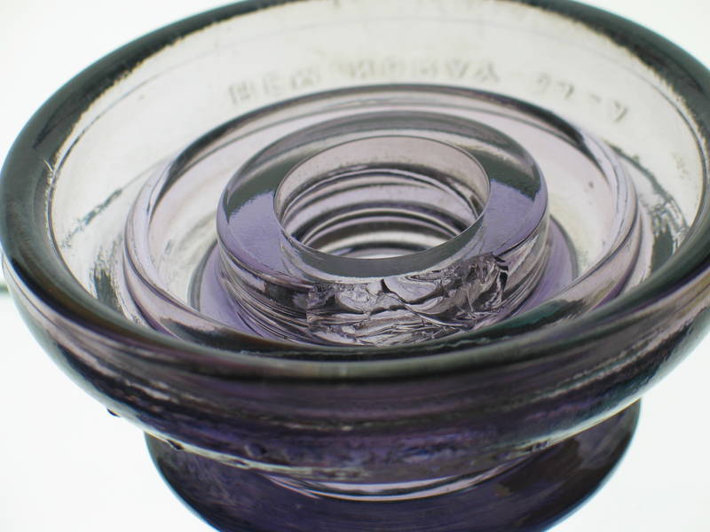 CD 194 [010] (F‑Skirt) HEMINGRAY‑54‑B (R‑Skirt) MADE IN U.S.A./[2-46] CD 195 (F‑Skirt) HEMINGRAY‑54‑A (R‑Skirt) MADE IN U.S.A./[2-46] SB. Popular purple 2 piece transposition. Bottom piece has roughness all around the top edge thread of the pinhole which is pretty common. There is also a small pencil tip ping on the top area where the top and bottom meet. Top has a chip near the threads that I will post a picture of. None of the damage described can be seen while assembled on display. I didn't even know it had any damage until I took it apart. Comes with a wooden pin and rubber washer as well to display.