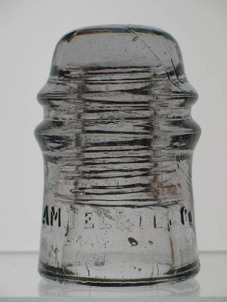 CD 121 [010] (F‑Skirt) AM.TEL.& TEL.Co. (Dome) [1] SB. A light purple that looks pink in person. Nice heavy piece. It is speculated that this purple glass is possibly from BGM after they shut down operations. Damage is limited to a match head ding on the dome. I'll post a picture for you to see.