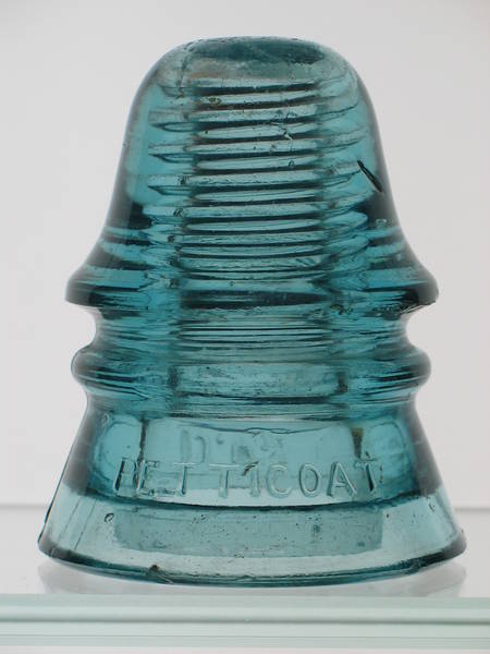 CD 151 [070] (F‑Skirt) H.G.CO. (R‑Skirt) PETTICOAT SB. I'll be conservative and call it a light powdery cornflower blue. Its a cornflower blue just slightly lighter than a typical cornflower blue a CD 106.3 Duquesne comes in. The best color reference I can find is [ID=382028947] from Dario. Its not the cornflower in the center of the top shelf. Its more like the one just to the left of center on the top shelf. Any damage is limited to nibbling on the sharp upper wire groove edge that these have. The nibbles are primarily on the petticoat side. 2 pencil point pecks on the sharp base edge also on the petticoat side. These were never plentiful and I hardly see them offered for sale anymore. The latest price guide seems to reflect that scarcity as well. I'll post pictures of both sides for you to decide. Listed last night @ $225 shipped with no takers. Listing tonight for $175 shipped. Check or PayPal no fee option welcomed. Shipped the next business day upon payment. First email as always! |