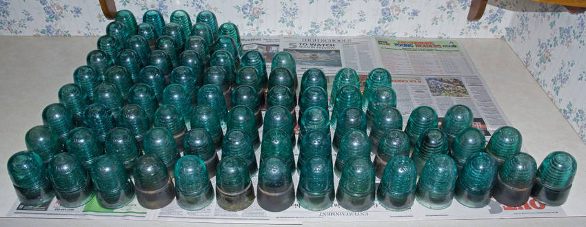 The last few days I've been getting the last of my creb beehives out from my shed to clean up for my new cabinet. All these creb beehives are the 45 Cliff St's without the patent dates. Most were picked from the Pennsy mainline between Fort Wayne and Warsaw, Indiana back in 97 when the pole line was cut down. I spent about three weeks walking the whole line between the two locations grabbing most of the creb beehives and petticoat beehives. The past month I've cleaned 72 creb beehives for my cabinet. All these are my better finds that includes greens and teal greens, embossing errors, single and double patent dates, 83 Fulton St's, and the best snowy ones. Except for the snowy ones, most of these I picked off the same Pennsy mainline between Van Wert and Bucyrus, Ohio, and the Burlington Route between Aurora and Mendota, Illinois back in the late 90's to early 2000's. When I get my cabinet filled up, I'll take a picture of it and post it later. Not all of the rest of my creb beehives will fit on the cabinet. |