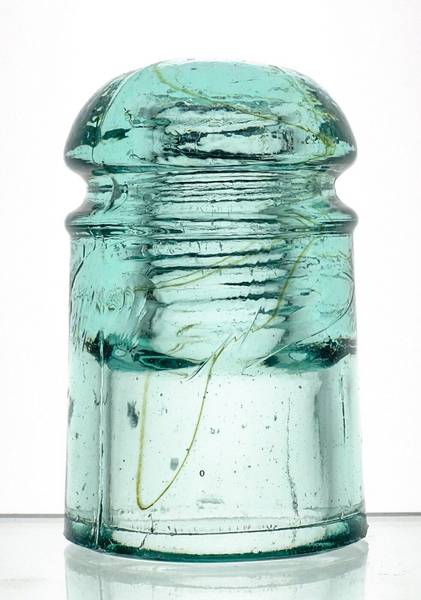 Neat old Brookfield CD 127 in a slightly unusual light green aqua color. Most of these early Brookfields are found in aquas that lean more towards the blue end of the spectrum, this one is very similar to the color of a Coca Cola bottle. It also has a neat amber stringer that dips down into the skirt and winds itself around the dome. The embossing is illegible for the most part, so identifying the EIN is nearly impossible. It does have a cross on the dome, on the side pictured, which narrows it down a bit. There are a couple bb pings on the opposite skirt, a 3/8" base chip, several smaller base flakes, and an area of nibbles along the base edge. Displays great! Asking $35 plus shipping. |