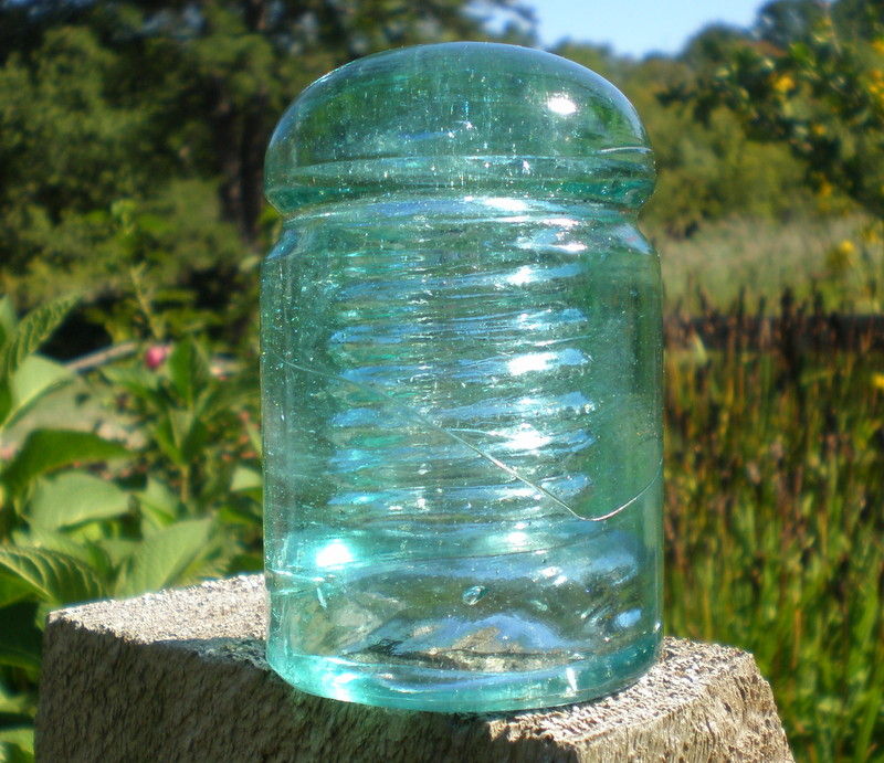BOLD base embossed H. BROOKE'S PAT. JAN.25th 1870....A small 4 embossed on the top of the dome. Shiny light aqua in color and really in excellent condition. There is a 1/4" shallow chip on the base, just to the left of the embossed H. I'll post a shot of the base showing the chip. This is a great piece that is not being offered all that often. Asking $225.00 plus actual shipping cost. PayPal, friend mode, or check. I pack really well but if you want extra insurance that will be added to the shipping cost. Photos were taken in full sun. |