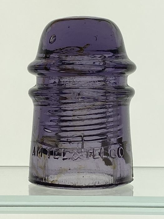 CD 121[095] (F‑Skirt) AM TEL & TEL Co {Note no periods} SB. Nice olive stringers visible front, back and dome. How often do you see one of these with any kind of impurities? Small ping on lower wire groove above the ampersand. Lightning flashover from lower wire groove down through the C in CO. None of this is distracting I just want to mention it for accuracy. No base flakes! Try finding another purple Am Tel & Tel with olive swirls. $200 plus shipping. Check or PayPal no fee option welcomed. I'm thinning my collection offering pieces that are seldom seen outside of catalog auctions anymore. Satisfaction guaranteed but shipping at your expense. Send me your wants. First email as always! |