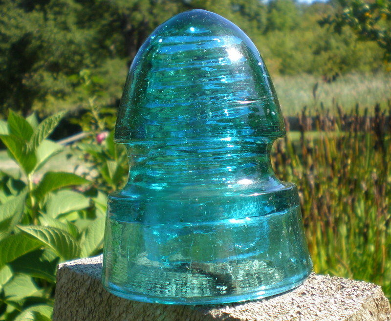 This CD 149 unembossed CD 149 is a very good looking blue/aqua color. The direct sunlight really brings out the blue. It has some issues but as you can see it presents itself very well. The main problem area is the inner skirt. About 1/3rd is chipped away. I will post a second photo showing the base. There is a 1/4" diameter chip half way up the side of the dome and a few nibbles along the lower ridge of the wire groove and one tick also on the side of the dome. I might add that all of the chips, nibbles and ticks are conveniently located on the back side of the insulator. I'm asking just $35.00 plus actual shipping cost. PayPal, friend mode, or check will get it delivered to your US address. |
