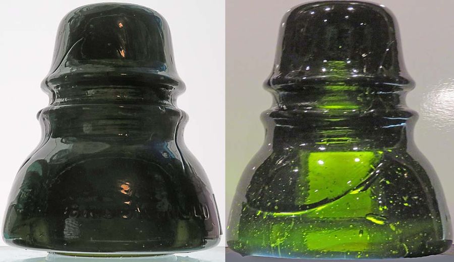 CD 152 BROOKFIELD -- sits on its extended inner skirt. Great dark olive with amber swirling -- passes light in the light box, but hard to photograph so I have showed it under lit as well. -- no issues -- $35 plus actual postage NOTE: I'm selling these insulators on behalf of the Jim Fielding estate -- PayPal (no fee friends and family) or checks are both accepted - I'll provide instructions. I'll also be handling all the packing and mailing. |