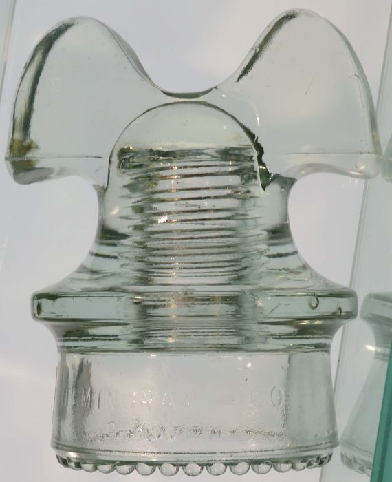 CD 257 HEMINGRAY-60 / numbers & dots // MADE IN U.S.A. / 4 -- RDP -- cool icy off clear color -- a few pecks on the upper ridge and small bb ding on the ear side -- $25 plus actual postage. NOTE: I'm selling these insulators on behalf of the Jim Fielding estate -- PayPal (no fee friends and family) or checks are both accepted - I'll provide instructions. I'll also be handling all the packing and mailing. |