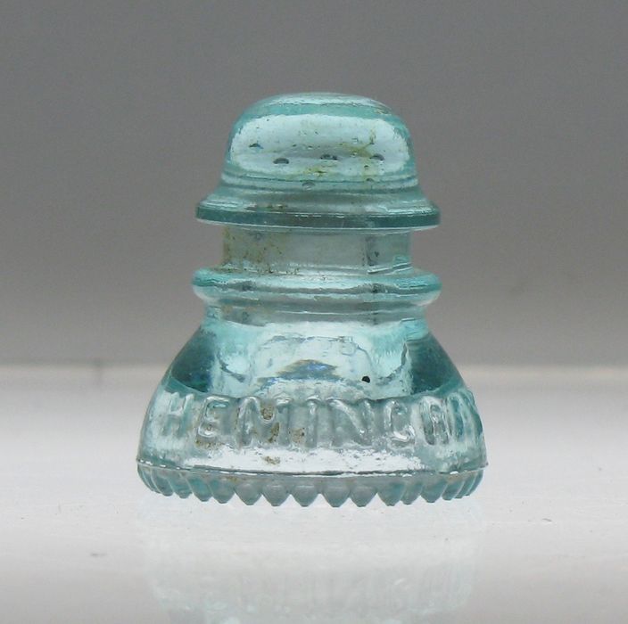 Here's an authentic mini CD 154 Hemingray (front) U.S.A. (reverse) with strong embossing, sharp drip points and some junk and bubbles! Mint condition! First email gets this cool salesman sample insulator for only $40 plus $4 shipping. Thanks! |
