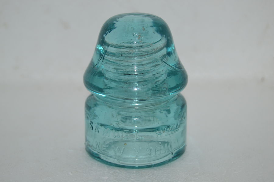 Listed is a CD 133.1 embossed Sameul Hnos / New York and on back Tel. Fed. Mex. Insulator comes in aqua - Has three dings seen in picture on Samuel side. SB - MLOD Asking $90 plus actual shipping.