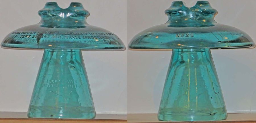 CD 342 (top) LOCKE PATENTS APR. 29 1902 JUNE 7, 1898 NOV 2, 1896 / SEPT 28,1897 DEC 15, 1896 APR 30, 1891 // No. 25 (base) LOCKE'S PAT'S / DEC. 15, 96 JUNE 7, 98 (Probably the most embossing on an insulator!) -- Fantastic rare piece! The top has been re-glued from four large pieces but looks good! There is very little original glass missing. The base is very nice with just a very small bruise near the top. Additional pictures included. Own this historic and rare CD for $2500 plus actual shipping. Additional details [id=608390820] Additional details [id=608390882] NOTE: I'm selling these insulators on behalf of the Jim Fielding estate -- PayPal (no fee friends and family) or checks are both accepted - I'll provide instructions. I'll also be handling all the packing and mailing. |