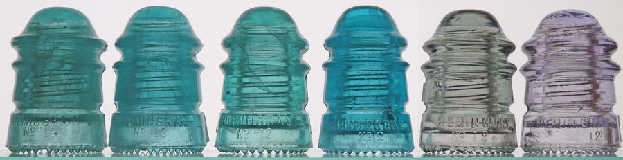 Insulators as follows -- actual postage additional: CD 113 HEMINGRAY / No 12 // PATENT / MAY 2 1893 -- aqua with heavy milk swirling -- great shape with just one drip chipped -- $45 (not sold) CD 113 HEMINGRAY / No 12 // PATENT / MAY 2 1893 -- aqua with heavy milk swirling -- base chip hits two drips, tiny bruise, one chipped drip, clean flake up skirt -- $25 (not sold) CD 113 HEMINGRAY / No 12 // PATENT / MAY 2 1893 -- aqua with nice milk swirls, great separation - big bubble on back -- one chipped drip and a small skirt flake under 12 -- $20 (not sold) CD 113 HEMINGRAY / No 12 // PATENT / MAY 2 1893 -- blue aqua with great milk swirls -- nice VNM condition! -- $35 (SOLD) CD 113 HEMINGRAY / No 12 // PATENT / MAY 2 1893 -- gray sage with a hint of purple, SDP -- just a couple of flaked drips! -- $125 (SOLD) CD 113 HEMINGRAY / No 12 // PATENT / MAY 2 1893 -- lavender, SDP -- shell fracture on the side - no glass missing -- $160 (SOLD) NOTE: I'm selling these insulators on behalf of the Jim Fielding estate -- PayPal (no fee friends and family) or checks are both accepted - I'll provide instructions. I'll also be handling all the packing and mailing. |