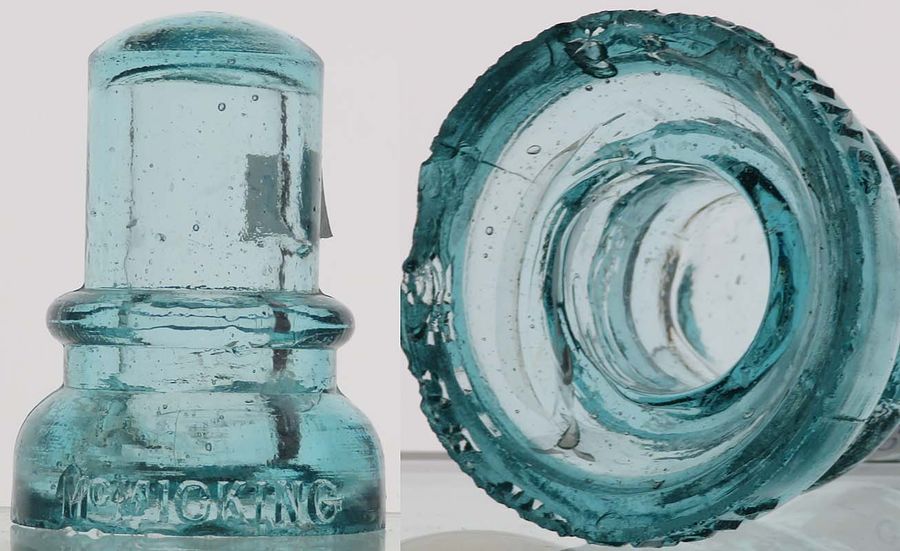 CD 734 McMICKING // VICTORIA. BC. 75 -- flat chip and some light flaking around the base (see pic) -- $70 plus actual postage NOTE: I'm selling these insulators on behalf of the Jim Fielding estate -- PayPal (no fee friends and family) or checks are both accepted - I'll provide instructions. I'll also be handling all the packing and mailing. |